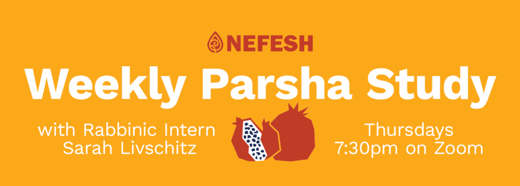 Join Rabbinic Intern Sarah Livschitz every Thursday for a study of the Parsha (Torah portion) of the week.
